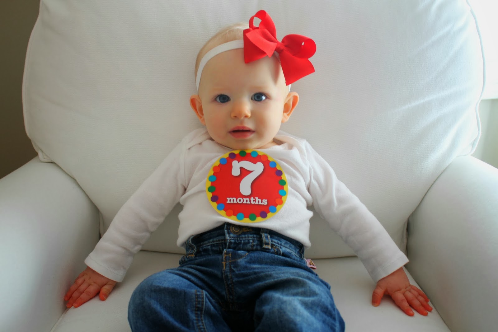 Hannah is sitting on her own wonderfully when she wants to be sitting up. Usually something has to captivate her interest. Otherwise, she'll throw herself back and roll around. She's not crawling yet, but I know it won't be long.